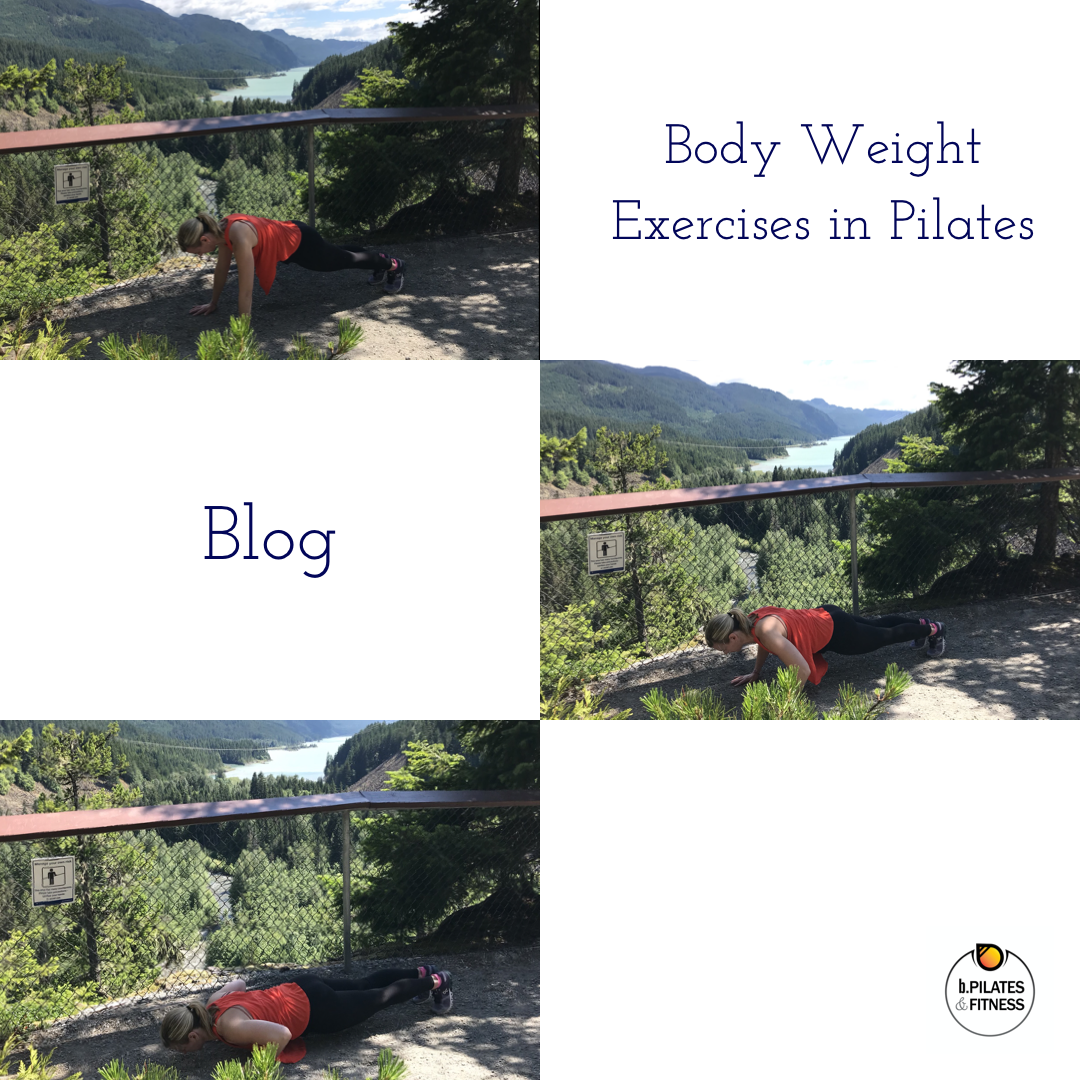 I know that I am guaranteed to hear several groans when I announce that it is time for pushups, burpees, or planks. Why? Because doing body weight exercises in Pilates (or any workout) is darned hard! It is surprising when you realize that these exercises are about holding up or moving your own body – no extra equipment needed.